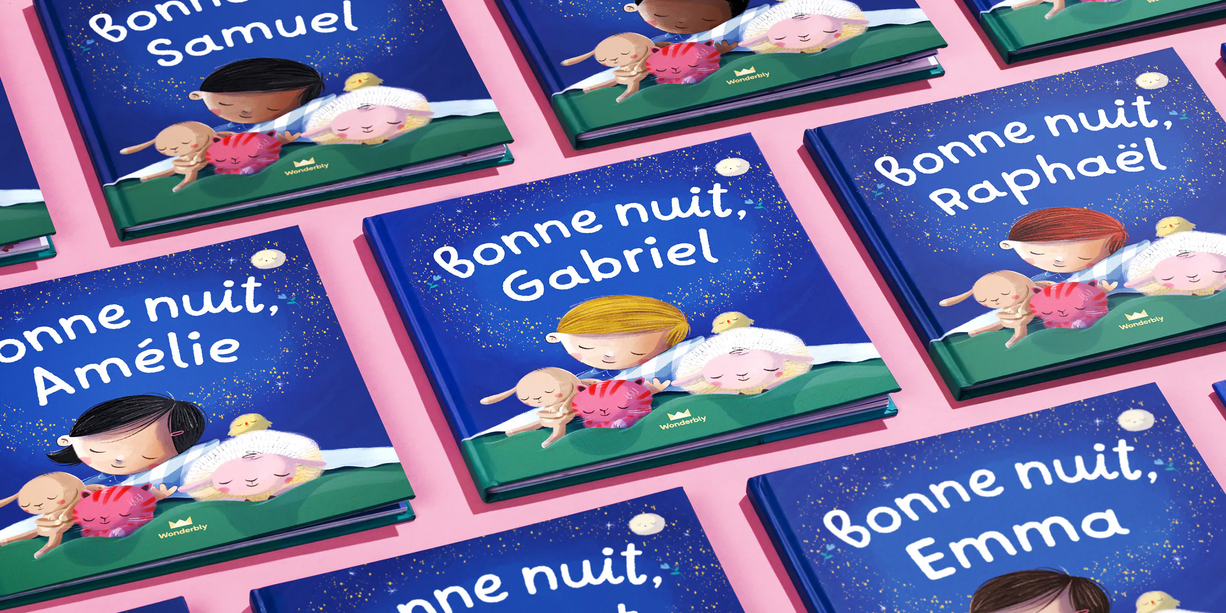 Dans cette histoire du soir, le prénom de l'enfant est partout : de la couverture à la double page finale, et dans chaque refrain. Pour partager des moments tout doux.
